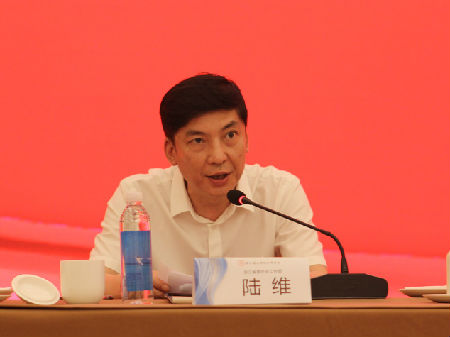 图为浙江省委社会工作部副部长陆维在大会上讲话